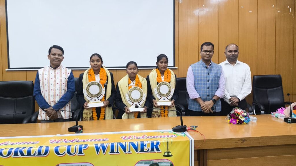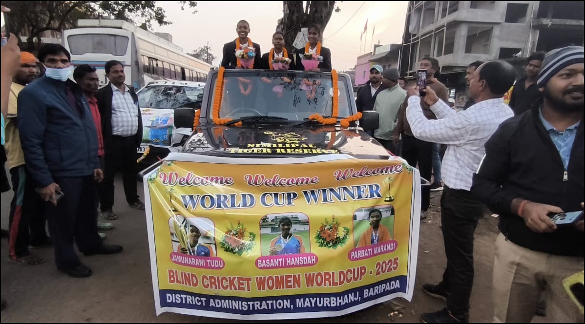 ନିକଟରେ ଶ୍ରୀଲଙ୍କାର କଲମ୍ବୋଠାରେ ଅନୁଷ୍ଠିତ ଦୃଷ୍ଟିବାଧିତ ମହିଳା କ୍ରିକେଟ ଟି-୨୦ ବିଶ୍ୱକପ୍ ଫାଇନାଲରେ ଭାରତୀୟ ଟିମ୍ ନେପାଳକୁ ହରାଇ ବିଶ୍ୱବିଜୟୀ ହୋଇଛି । ବିଜେତା ଦଳରେ ମୟୁରଭଞ୍ଜ ମାଟିର ତିନି ସୁକନ୍ୟା ଯମୁନାରାଣୀ ଟୁଡୁ, ବାସନ୍ତୀ ହାଁସଦା ଓ ପାର୍ବତୀ ମାର୍ଣ୍ଡି ପ୍ରତିନିଧିତ୍ଵ କରିଥିଲେ । ଆଜି ସେମାନେ ନିଜ ଜନ୍ମମାଟିକୁ ଫେରିବା ଅବସରରେ ପୋଡାଅସ୍ତିଆସ୍ଥିତ ବୀର୍ସାମୁଣ୍ଡା ଛକ ନିକଟରେ ପୁଷ୍ପଗୁଚ୍ଛ ଦେଇ ଭଵ୍ୟ ସ୍ୱାଗତ କରାଯାଇଥିଲା। ଏହାସହ ସେମାନଙ୍କୁ ପୁଷ୍ପ ସଜ୍ଜିତ ଖୋଲା ଜିପ୍ ରେ ସହର ପରିକ୍ରମା କରି ଜିଲ୍ଲାପାଳଙ୍କ ସମ୍ମିଳନୀ କକ୍ଷକୁ ପାଛୋଟି ନେଇଥିଲେ । ମୟୂରଭଞ୍ଜ ଜିଲ୍ଲାପାଳ ହେମକାନ୍ତ ସୟ, ଜିଲ୍ଲା ଆରକ୍ଷୀ ଅଧିକ୍ଷକ ବରୁଣ ଗୁଣ୍ଟୁପାଲ୍ଲୀ, ଅତିରିକ୍ତ ଜିଲ୍ଲାପାଳ ଦୁଖବନ୍ଧୁ ନାୟକ ଉପସ୍ଥିତ ରହି ତିନି ଖେଳାଳିଙ୍କୁ ସମ୍ୱର୍ଦ୍ଧିତ କରିଥିଲେ । ନିଜର କଠିନ ସାଧନ ଓ ଅଭ୍ୟାସ ବଳରେ ଭାରତୀୟ ଦଳକୁ ପ୍ରତିନିଧିତ୍ଵ କରି ବିଜୟ ଅଣିଥିବାରୁ ଜିଲ୍ଲାପାଳ ଶ୍ରୀ ସୟ ସେମାନଙ୍କୁ ଉଚ୍ଚ ପ୍ରଶଂସା କରି ଆମ ଜିଲ୍ଲା ପାଇଁ ଗର୍ବ ଓ ଗୌରବର ବିଷୟ ବୋଲି କହିଥିଲେ । ଏହାସହ ଜିଲ୍ଲା ପ୍ରଶାସନ ତରଫରୁ ସେମାନଙ୍କ ଖେଳର ବିକାଶ ନିମନ୍ତେ ଆନୁଷଙ୍ଗିକ ସୁବିଧା ସୁଯୋଗ ଯୋଗାଇ ଦେବାର ପ୍ରତିଶୃତି ଦେଇଥିଲେ । ଏହି ଅବସରରେ ତିନି ଖେଳାଳି ସେମାନଙ୍କ ଅନୁଭୂତି ସମ୍ପର୍କରେ ବଖାଣିଥିଲେ । ସୂଚନା ଥାଉକି ଦ୍ରୁତ ବୋଲର ଭାବେ ଯମୁନାରାଣୀ ଟୁଡୁ , ଅଲ୍ ରାଉଣ୍ଡର ଭାବେ ବାସନ୍ତୀ ହାଁସଦା, ୱିକେଟ କିପର ଭାବେ ପାର୍ବତୀ ମାରାଣ୍ଡି ଭାରତୀୟ ଦଳଙ୍କୁ ପ୍ରତିନିଧିତ୍ଵ କରିଥିଲେ । ଅନୁଷ୍ଠିତ ଉକ୍ତ ସଭାରେ ଜିଲ୍ଲା ସାମାଜିକ ସୁରକ୍ଷା ଅଧିକାରୀ ରଣଜିତ୍ ସୋରେନ୍, ଜିଲ୍ଲା ସୂଚନା ଓ ଲୋକ ସମ୍ପର୍କ ଅଧିକାରୀ, ବାରିପଦା ଉପଖଣ୍ଡ ସୂଚନା ଓ ଲୋକ ସମ୍ପର୍କ ଅଧିକାରୀ,ଖୁଣ୍ଟା ବ୍ଲକର ଜନ ପ୍ରତିନିଧିଗଣ ଓ ଖେଳାଳିଙ୍କ ପରିବାର ଏବଂ ବନ୍ଧୁ ପରିଜନ ଓ ବିଭିନ୍ନ ଗଣମାଧ୍ୟମର ପ୍ରତିନିଧି ମାନେ ଉପସ୍ଥିତ ଥିଲେ ।
