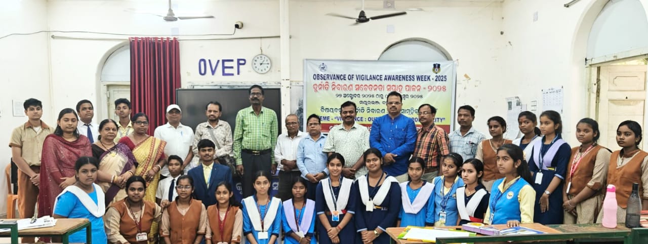ବାରିପଦା -ତା -27-10-2025-ଚଳିତ ମାସ ଅକ୍ଟୋବର ୨୭ ରୁ ନଭେମ୍ବର ୨ ତାରିଖ ପର୍ଯ୍ୟନ୍ତ ରାଜ୍ୟବ୍ୟାପୀ ଦୁର୍ନୀତି ନିବାରଣ ସଚେତନତା ସପ୍ତାହ ପାଳନ ଉପଲକ୍ଷେ ଆଜି ବାରିପଦାସ୍ଥିତ ମହାରାଜା କୃଷ୍ଣଚନ୍ଦ୍ର ସରକାରୀ ଉଚ୍ଚ ବିଦ୍ୟାଳୟରେ ବିଦ୍ୟାଳୟସ୍ତରୀୟ ଇଂରାଜୀ ଓ ଓଡ଼ିଆରେ ” ଦୁର୍ନୀତି ନିବାରଣ : ଆମ ସାମୂହିକ ଦାୟିତ୍ୱ ” ବିଷୟବସ୍ତୁ ଉପରେ ଆଧାରିତ ବକ୍ତୃତା ଏବଂ କାର୍ଟୁନ କମ କ୍ୟାପସନରେ ” ଆଣ୍ଟି କରପ୍ସନ ” ବିଷୟ ବସ୍ତୁ ଉପରେ ପ୍ରତିଯୋଗିତା ଅନୁଷ୍ଠିତ ହୋଇଯାଇଛି l