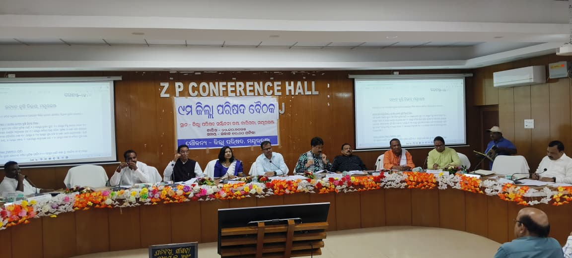ମୟୂରଭଞ୍ଜ ଜିଲ୍ଲା ପରିଷଦ ର ୯ମ ଜିଲ୍ଲା ପରିଷଦ ବୈଠକ ଆଜି ପୂର୍ବାହ୍ନ ରେ ଜିଲ୍ଲା ପରିଷଦ ସମ୍ମିଳନୀ କକ୍ଷରେ ଜିଲ୍ଲା ପରିଷଦ ଅଧ୍ୟକ୍ଷା ଭାରତୀ ହାଁସଦାଙ୍କ ଅଧ୍ୟକ୍ଷତା ରେ ଅନୁଷ୍ଠିତ ହୋଇଯାଇଛି.