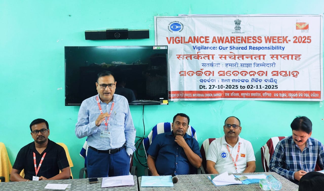 ସର୍ତକତା ସଚେତନତା ସପ୍ତାହ ୨୦୨୫ ପାଳନ ଆନୁକୁଲ୍ୟରେ ମୟୂରଭଞ୍ଜ ଡ଼ାକ ମଣ୍ଡଳ, ବାରିପଦା ପକ୍ଷରୁ ଏକ ସଚ଼େତନତା କାର୍ଯ୍ୟକ୍ରମ ସହ ଜନ ଅଭିଯୋଗ ଶୁଣାଣି ପାଇଁ ଉଦଳା ପଞ୍ଚାୟତର ନୂଦଡ଼ିହା ଗ୍ରାମରେ ଏକ ଗ୍ରାମସଭା ର ଆୟୋଜନ କରାଯାଇଥିଲା l ମୟୂରଭଞ୍ଜ ଡ଼ାକ ମଣ୍ଡଳର ଉପ ଅଧିକ୍ଷକ ଶ୍ରୀ ପ୍ରଣବ କୁମାର ମିଶ୍ରଙ୍କ ପ୍ରତକ୍ଷ୍ୟ ତତ୍ବାବଧାନ ରେ ଏହି ଗ୍ରାମସଭାରେ ଉଦଳା ସରପଞ୍ଚ ଙ୍କ ପ୍ରତିନିଧି ଯୋଗ ଦେଇଥିଲେ l ମଞ୍ଚାସୀନ ଅତିଥି ମାନେ ଆର୍ଥିକ ଠକେଇ ଓ ସର୍ତକତା ସଚ଼େତନତା ର ବିଭିନ୍ନ ଦିଗ ଉପରେ ଉପସ୍ଥିତ ଗ୍ରାମବାସୀ ଙ୍କୁ ସଚେତନ କରିଥିଲେ। ଏହି କାର୍ଯ୍ୟକ୍ରମ କୁ ମୟୂରଭଞ୍ଜ ଡ଼ାକ ଅଧିକ୍ଷକ କାର୍ଯ୍ୟାଳୟ ର କାର୍ଯାଳୟ ସହାୟକ ଶ୍ରୀ ଚନ୍ଦ୍ରଶେଖର ମହାନ୍ତି, ସୁଶାନ୍ତ କୁମାର ବେହେରା, ଉଦଳା ଅଭରସିୟାର ଶ୍ରୀ ଜଗମୋହନ ବେହେରା ଓ ଡ଼ାକ ସେବକ ପରମେଶ୍ଵର ଜେନା ସମେତ ନୁଦଡ଼ିହା ଉପ ଡ଼ାକଘର କର୍ମଚାରୀମାନେ ସହଯୋଗ କରିଥିଲେ lବାରିପଦା:- ୨୮/୧୦/୨୦୨୫